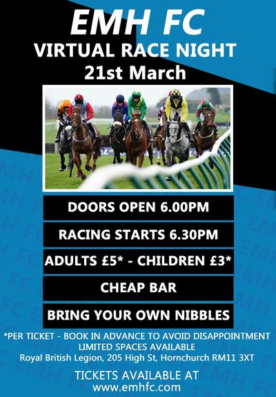 EMH will be hosting their 3rd annual Race Night on Saturday 21st March at the Royal British Legion in Hornchurch.
